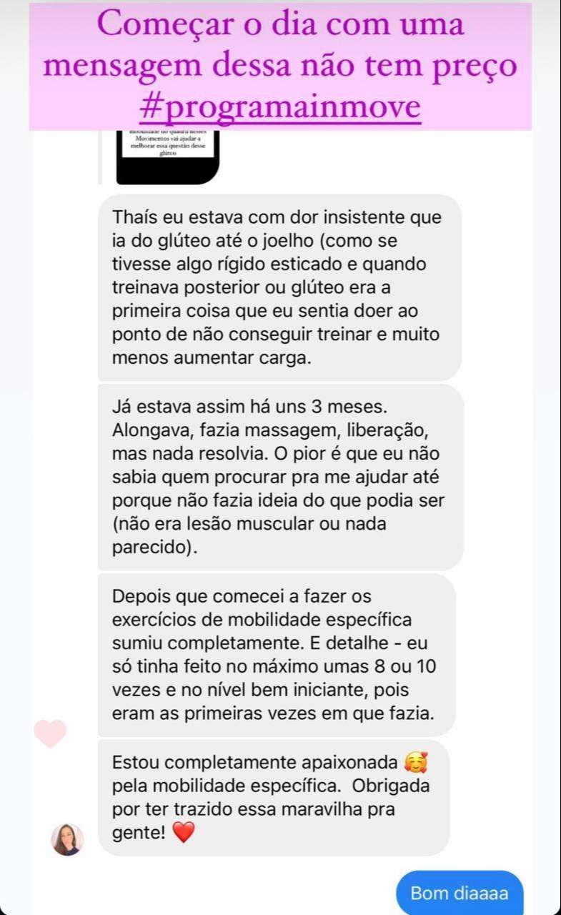 Com o programa InMove, você aprende passo a passo o Treinamento Articular Consciente, elimina dores reais dos alunos e se posiciona como referência — podendo cobrar mais, trabalhar menos e viver de propósito.